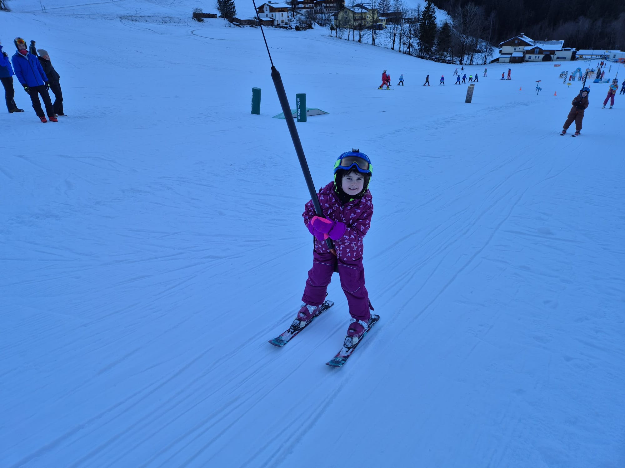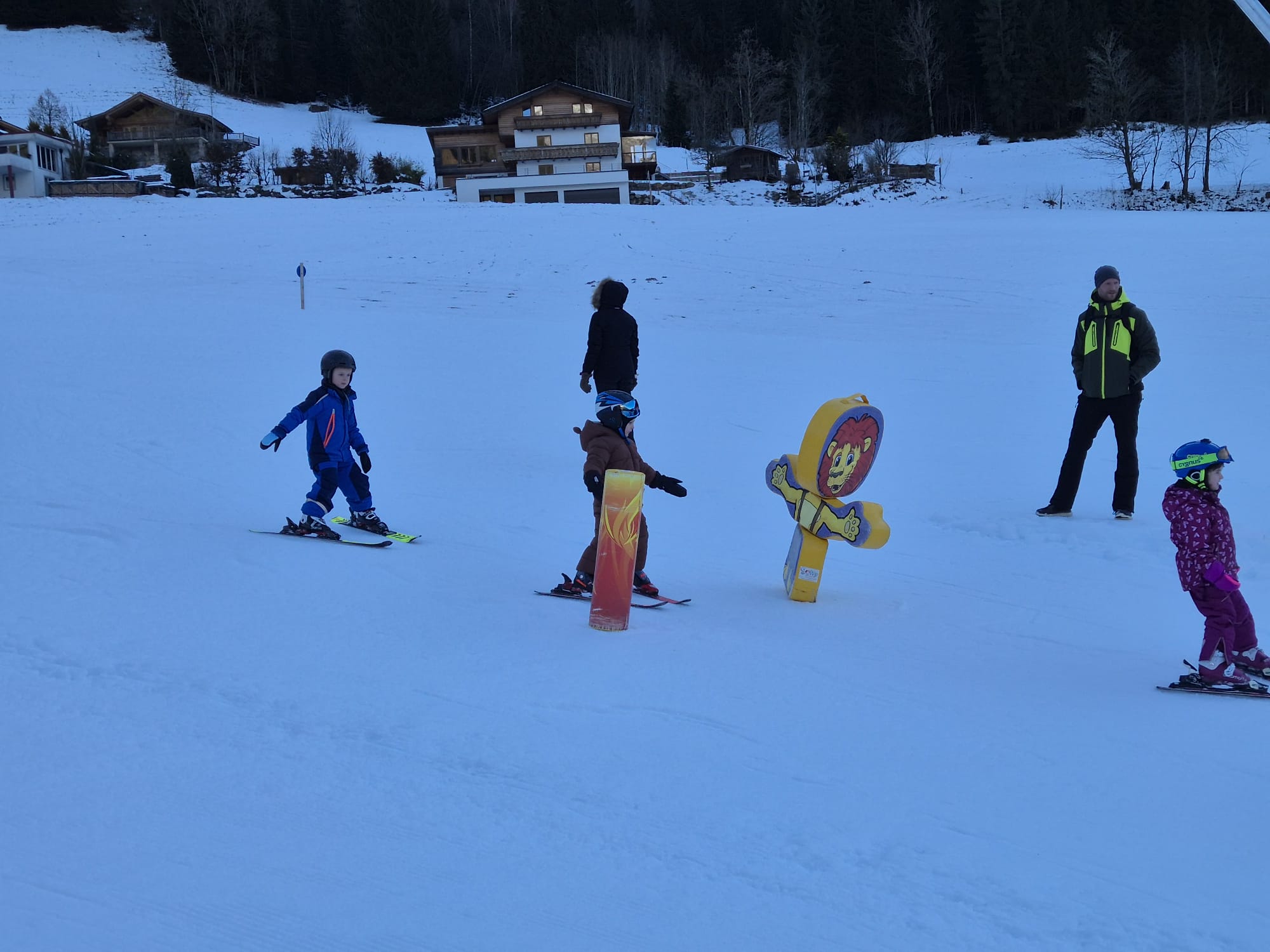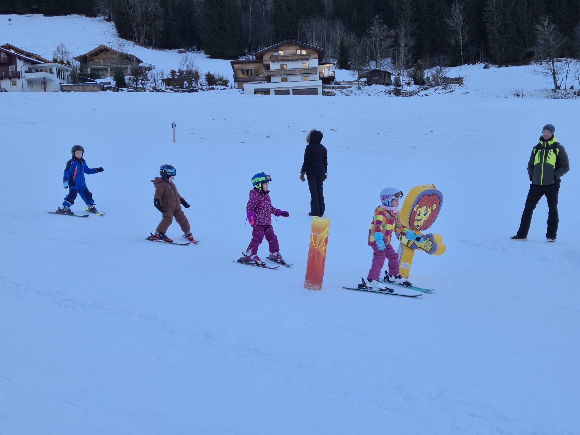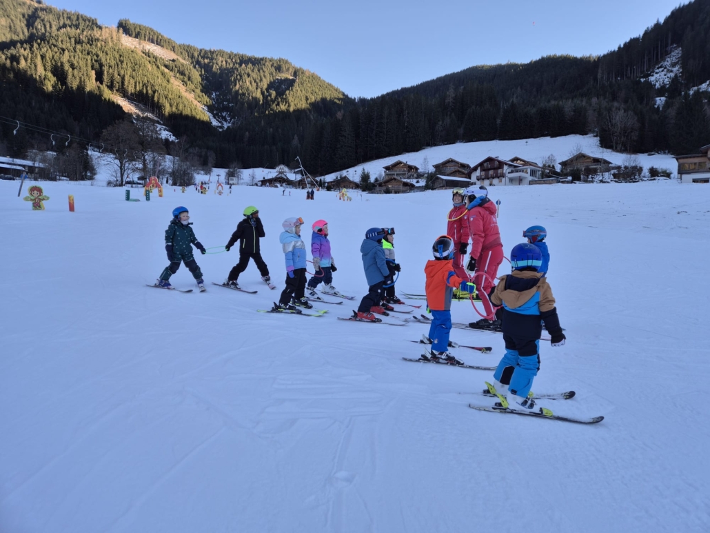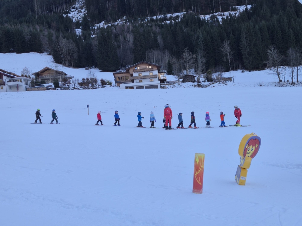Beim diesjährigen Anfängerkurs waren 28 Kinder angemeldet. Mit den 6 Ski-Lehrerinnen und Lehrern lernten die Kinder, von denen manche zum allerersten Mal auf Skiern standen, das Ski-Fahren. Bereits am Samstag Nachmittag konnten alle von ihnen selbständig mit dem Tellerlift fahren. Die Kinder hatten viel Spaß und Motivation, die Begeisterung war ihnen „ins Gesicht geschrieben“.