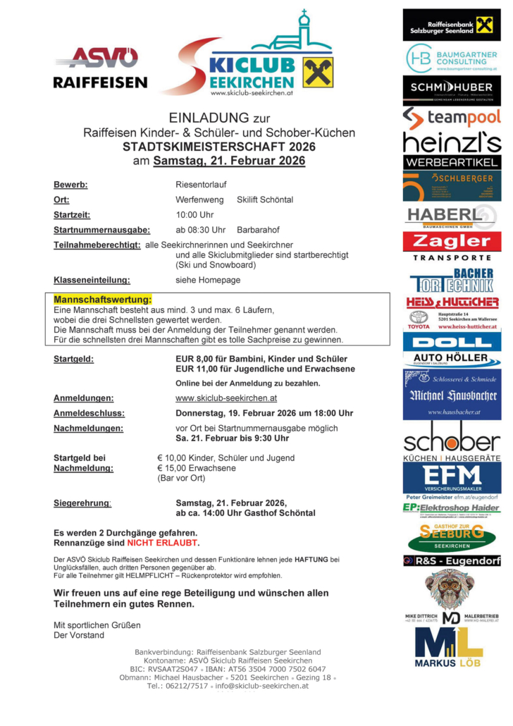 Teilnehmerberechtigt: alle Seekirchnerinnen und Seekirchner sowie alle Skiclubmitglieder.